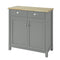 Yläosan kaksinkertaiset ovet pitävät tavarasi pölyltä suojassa, ja säädettävät hyllyt mahdollistavat joustavan säilytyksen. Avoin keskiosa on ihanteellinen mikroaaltouunille, kahvinkeittimelle tai koriste-esineille.