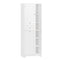 Tämä tilaa säästävä korkea kaappi tarjoaa sekä avointa että suljettua säilytystilaa.