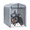 Tämä monikäyttöinen säilytysteltta tarjoaa erinomaisen suojan niin polkupyörille kuin puutarhan työkaluillekin. Suuri ovi suojaa tehokkaasti pölyltä ja auringonvalolta, ja pitää tavarasi suojassa sääolosuhteilta.