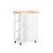 [VANKKA JA MONIPUOLINEN RAKENNE]: Vahvoilla mäntypuujaloilla ja ruostumattomasta teräksestä valmistettu työtaso, tämä pyörillä varustettu keittiövaunu voidaan tarpeen mukaan käyttää keittiösaarekkeena, tarjoiluvaununa tai keittiöbuffetina.