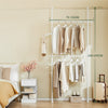 Varustettu kahdella säädettävällä pylväällä ja kahdella ripustustangolla – luo helposti oma avoin vaatesäilytysratkaisu ilman pysyvää asennusta.