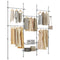 Sisäänvedettävässä vaatetelineessä on 4 liukuvaa kiskoa, jotka täyttävät päivittäiset vaatimukset vaatteiden ripustamiseksi; niitä voidaan käyttää paitojen, takkien jne. ripustamiseen; Sivussa olevia koukkuja voidaan käyttää hattuihin, pyyhkeisiin ja huiviin jne.