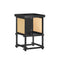 Yöpöydässä on selkeät linjat ja minimalistinen ilme. Rottinkinen oven muotoilu ja musta viimeistely täydentävät erilaisia kodin sisustustyylejä modernista perinteiseen.