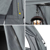 Nopea pystyttää – helppo pakata: Sähköpumpun ja helppojen kiinnityskoukkujen ansiosta teltta nousee pystyyn muutamassa minuutissa, vaikka yksin. Rullattava säilytyspussi tekee kuljettamisesta vaivatonta.